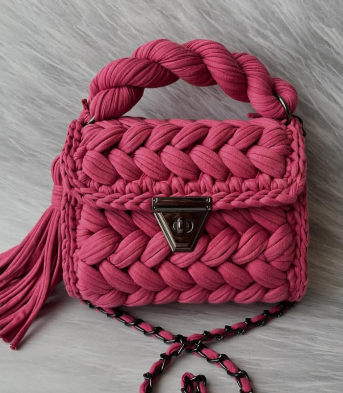 Multi-Tone Pink and Brown Braided Handmade Purse