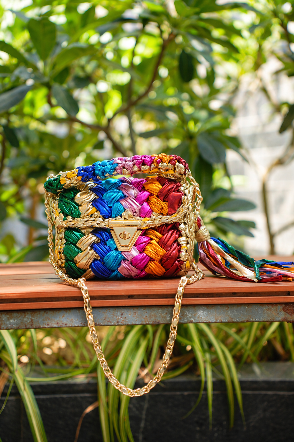 Be the first to review “Gold Multicolour Metallic Crochet Bag”