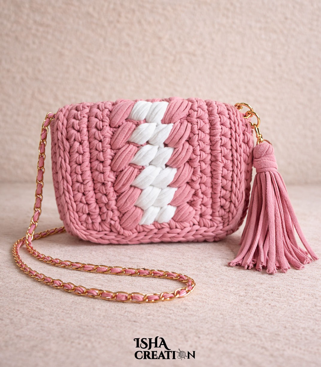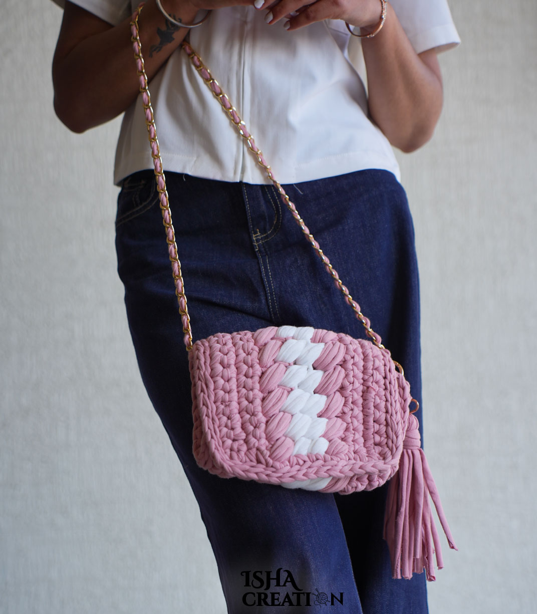 Designed with a sleek chain sling strap and a handmade tassel detail, this bag adds a fashionable touch to any casual or semi-formal outfit. Lightweight yet durable, it is comfortable to carry for daily use, outings, or special occasions.